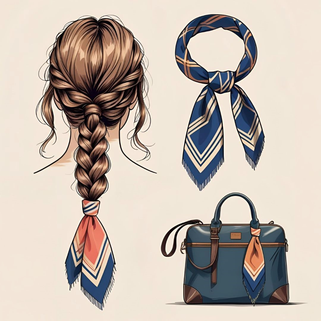 I’ve seen that in 2025 every fashion trend is a combination of retro and new elements. Everything vintage is in fashion, exceptionally the way costumes are accessorized. With that said, are foulards back? But wait. What is a foulard? Great question, I definitely called it “the scarf thing” until yesterday. A foulard is a lightweight, silky fabric. It’s got a soft and smooth texture. The word ‘foulard’ comes from French, by the way. It’s usually made of silk, but sometimes of a blend of silk and cotton. Foulards can be worn as tops, belts, bandanas, tied to your bags, worn around your neck or wrist, looped into your top, or braided into your hair.