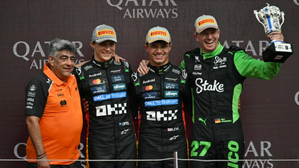 Norris extended his lead and waved to his neon yellow grandstand on the final lap. Piastri followed him across the line. Behind them, Hulkenberg, calm under pressure, kept Hamilton at bay and took third. The most impressive part is that he started P19 and made his way up to P3. It marked Sauber’s first podium since 2012.